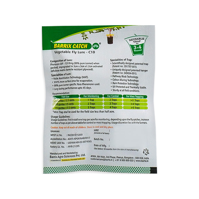 - Attracts and traps Bactrocera cucurbitae & its other 226 Subspecies.